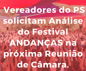 Lembrou que, malgrado o atual presidente fazer questão de dizer que o PS se opunha ao Andanças, na sua estratégia de dividir para reinar, tanto junto da população como da organização do Andanças, o PS sempre se dispôs a contribuir para a melhoria do Festival, como de resto está bem registado ao longo de todo este processo que agora acaba. Os eleitos do PS sempre se opuseram à maneira improvisada, pontual e pouco clara como o Presidente do Município foi resolvendo as questões de um festival que, pelas suas dimensões, valores e investimentos, teria necessariamente de ter outra abordagem, para poder crescer e vingar bem.